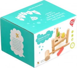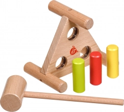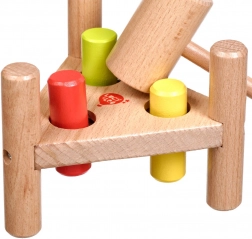 Ova kvalitetna drvena čekićarka s trokutastom bazom idealan je izbor za djecu koja vole aktivnu igru i učenje. Zahvaljujući jednostavnoj i sigurnoj konstrukciji djeca vježbaju finu motoriku, zapažanje i prostornu percepciju. Obojeni klinovi (crveni, žuti, zeleni) potiču na istraživanje i učenje boja.