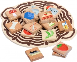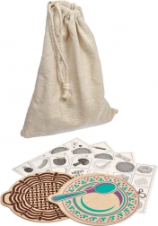 U pakiranju se nalaze i 4 crno-bijela predloška za brze igre opažanja i vježbu razvrstavanja. Pločice se nakon igre mogu spremiti u zatvarajuću lanenu vrećicu, pa se ništa ne izgubi. Drveni elementi imaju glatke rubove i jasne, razumljive ilustracije za lako prepoznavanje, uključujući i zagonetke poput gljiva – neke jestive, druge nejestive.