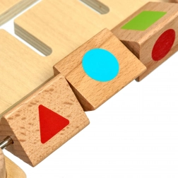 Šareni oblici pomiču se po stazama tako da odgovaraju predlošku. Djeca vježbaju koordinaciju oko–ruka, koncentraciju i rješavanje zadataka korak po korak.