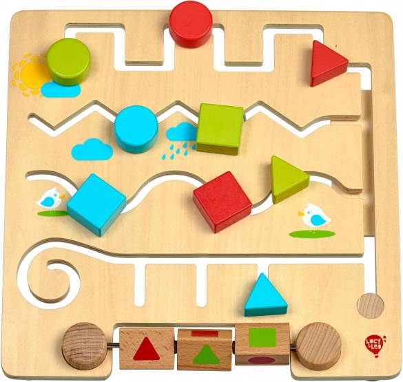 Drveni labirint s geometrijskim oblicima LUCY & LEO zabavna je i edukativna igračka koja djeci pomaže učiti oblike i boje na prirodan način. Glatka igraća ploča s vijugavim stazama vodi šarene dijelove tako da odgovaraju oblicima na rotirajućim blokovima ili zadanim uzorcima na karticama. Zahvaljujući robusnom drvu i sigurnoj izradi igračka je prikladna za svakodnevnu igru.