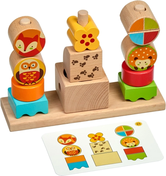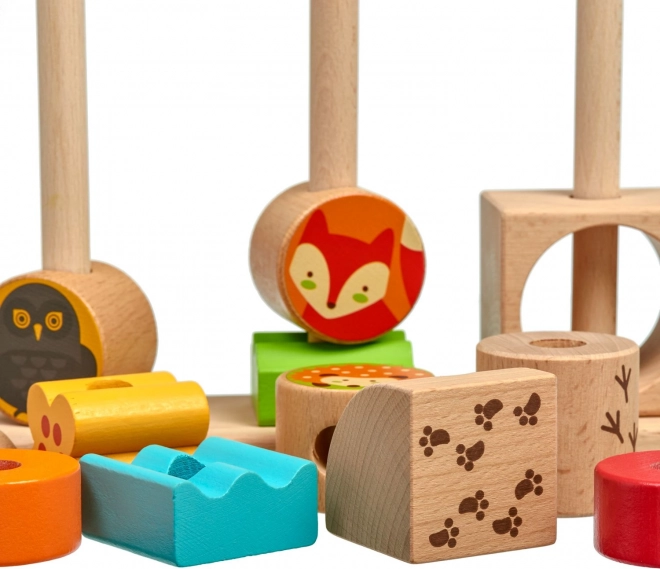 Kocke sa šumskim životinjama i raznobojni geometrijski dijelovi zadržavaju pažnju djece i potiču maštu. Idealno za kreativnu gradnju i slobodnu igru.