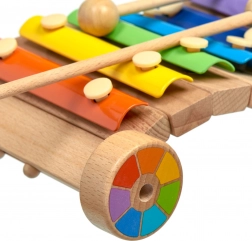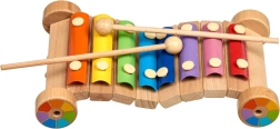 Drveno postolje s kotačićima omogućuje da se ksilofon vuče ili gura, pa je učenje glazbe još zabavnije.