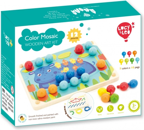 Otkrijte kreativni drveni set za djecu od 3 godine koji razvija finu motoriku, koordinaciju oko–ruka, prepoznavanje boja i strpljenje. Set sadrži 70 velikih šarenih čepića, pincetu, 12 dvostranih predložaka sa životinjama, drvenu podlogu s rupama i 4 šarene vezice za vezenje – idealno Montessori pomagalo za učenje kroz igru.
