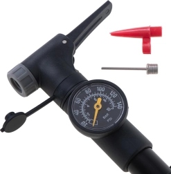 Opremljena je s nekoliko nastavaka za različite tipove ventila, uključujući ventile za sportske lopte i bazensku opremu. Zahvaljujući preciznom manometru odmah ćete znati točan tlak prema svojim potrebama.
