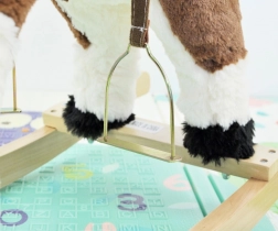 Dio konjića je sedlo sa stremenima i uzdama, što omogućava djeci približiti se osjećaju stvarnog jahanja na konju.