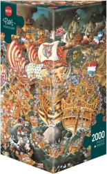 Puzzle Bitka kod Trafalgara od poznatog karikaturista Michaela Rybe vas prenosi u povijesne trenutke s prekrasnom grafikom. Paket sadrži 2000 dijelova i netradicionalnu trostranu kutiju s posterom kao predložak za slaganje.