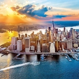 Ova slagalica prikazuje zadivljujući pogled na New York pri zalasku sunca, u zlatnim i plavim tonovima.