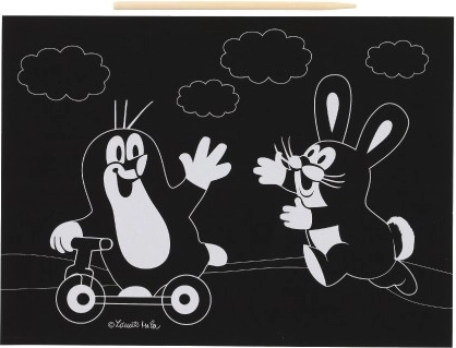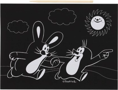 Uživajte u kreativnoj zabavi sa slikovnicom za struganje s motivom Krtka i njegovih prijatelja. Uz pomoć drvene špatule otkrivaju se skrivene šarene slojeve.