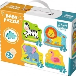 Otkrijte radost prvog slaganja s dječjim puzzle setom TREFL Baby puzzle Životinje na safariju 4u1. Svaka slagalica ima različit broj dijelova (3, 4, 5 i 6), pa dijete može postupno povećavati težinu i graditi samopouzdanje. Čvrsti, izdržljivi i sigurni dijelovi prilagođeni su malim dječjim rukama.