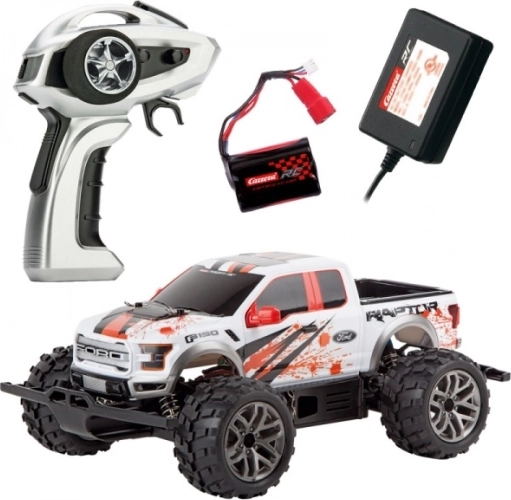 RC auto Carrera PROFI FORD F‑150 RAPTOR u mjerilu 1:18 dizajniran je za brzinu, izdržljivost i preciznu upravljivost. Digitalno proporcionalno upravljanje osigurava glatko dodavanje gasa i osjetljivo skretanje, dok 4WD, uljni amortizeri i povišeno podvozje pružaju stabilnost i trakciju na različitim podlogama. Funkcionalna prednja i stražnja svjetla dodatno pojačavaju doživljaj vožnje.