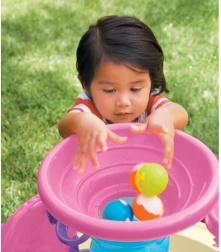 LITTLE TIKES Spiralin' Seas je zabavni vodeni park koji djecu uvodi u svijet eksperimentiranja s vodom. Zahvaljujući ružičasto-bež dizajnu, spiralnom tornju i vodenom kolu, djeca promatraju protok, okretanje i prskanje, dok razvijaju finu motoriku, koordinaciju ruka-oko i socijalne vještine kroz zajedničku igru.