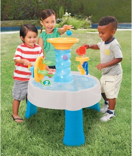 Spiralna fontanaFantastična zabava s vodom i lopticama. Loptice se spuštaju u ogromnu spiralu.Igramo se s njima kroz razne aktivnosti.Dostupan je veliki kotač koji nam pomaže izvaditi loptice iz vode.Igranje s ovom igračkom je ogromna zabava.