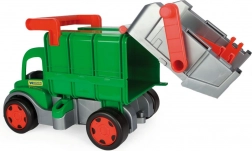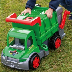 Smetlarski kamion WADER GIGANT FARMER donosi djeci realističnu igru čišćenja grada. Zahvaljujući pokretnom podizaču lako se prazni priloženi kontejner, otvarajuća stražnja klapna olakšava utovar i istovar, a kotači slobodnog okretanja osiguravaju glatko kretanje. Nosivost do 50 kg omogućuje djeci da sjednu na kamion i drže se za praktičnu gornju ručku, dok prednja kuka omogućuje vuču ili povezivanje s drugim vozilom ili užetom.