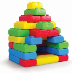 Set od 33 velika dijela u tri oblika omogućuje djeci gradnju kućica, kula i zidova. Lagane i lako spojive kocke potiču maštu i samostalnu igru.