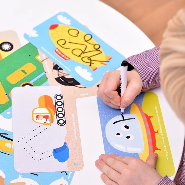 Otkrijte zabavan i edukativan set CzuCzu za male ljubitelje vozila. Šarene kartice sa zadacima i brisivi flomaster potiču kreativnost, logičko razmišljanje i finu motoriku. Zahvaljujući ponovno uporabljivim stranicama djeca neprestano mogu isprobavati nove ideje – idealno za putovanja i kao sjajan dar za predškolce.