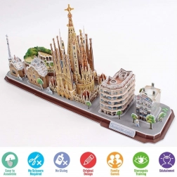 Ove 3D puzzle donose u vaš dom atmosferu Barcelone, uključujući slavnu SAGRADA FAMILIA i druge arhitektonske dragulje. Dijelovi su predrezani, lako se odvajaju iz ploče i prema uputama ih možete glatko sastaviti bez upotrebe ljepila i škara. Gotov model ističe se kao stilski dodatak dnevnom boravku, radnoj sobi ili dječjoj sobi.