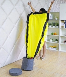Zahvaljujući udobnim užetnim ručkama košaru lako prenesete iz sobe u sobu, na terasu ili na piknik. Neutralna siva košara i žuto-crna podloga uklopit će se u svaki interijer.