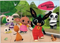 Podne puzzle s motivom omiljenog junaka BING razveselit će svako dijete. Zahvaljujući velikim, izdržljivim dijelovima odlično se slažu na podu te potiču finu motoriku, koncentraciju i prepoznavanje oblika i boja.