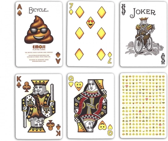 Karte Emoji renomiranog proizvođača Bicycle donose u tradicionalne kartaške igre zabavan i originalan element. Svaka je karta ukrašena popularnim emotikonima, što igri daje novu dimenziju i jamči osmijehe na licima igrača.