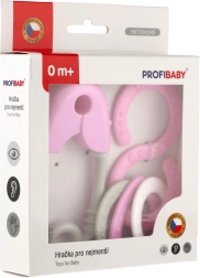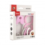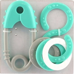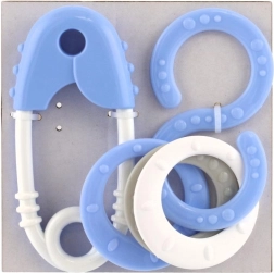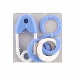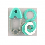 Slatki set zvečkica za najmlađe u pastelnim bojama kombinira oblik sigurnosne igle i osmice. Podupire razvoj osjetila, vježba refleks hvatanja te je izrađen bez oštrih rubova i sitnih odvojivih dijelova.