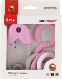 Ovaj plastični set zvečkica osmišljen je za najmlađu djecu i pomaže razvijati sluh, vid i dodir. Zahvaljujući blagom zveckanju i ugodnim pastelnim bojama, prirodno motivira djecu na istraživanje i igru. Oblik sigurnosne igle (duljina 12 cm) i osmice dobro leži u dječjoj ruci te podupire siguran trening hvatanja.