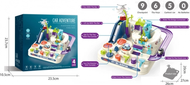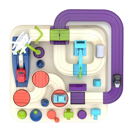Upravljačke tipke i okretni kotačići daju djeci kontrolu nad dizalicama, pomičnim platformama i mostom. Igra razvija planiranje i odlučivanje – mali trkači moraju razmisliti kako najbolje proći rutu i svladati izazove.