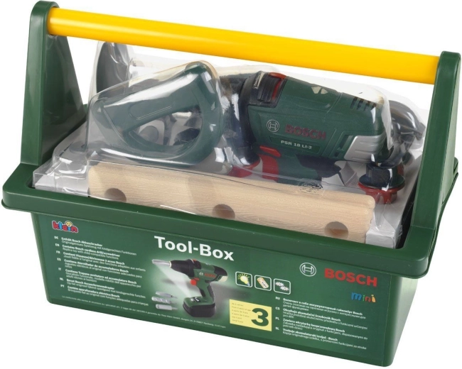 Ovaj kvalitetan dječji set nastao je u licenci BOSCH i dizajniran je tako da vjerno oponaša pravi alat, a pritom je u potpunosti siguran za djecu. Robusna, tamnozelena kutija za alat s udobnom žutom ručkom drži sve dijelove uredno na okupu i olakšava prenošenje.