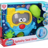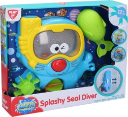 Akvarij s vodenim mlincem pretvara kupanje vašeg djeteta u uzbudljivo iskustvo. Pomoću žlice nadopunite vodu u tuljanove naočale i gledajte kako ribice u akvariju zaplešu. Pritisnite tuljanov nos i uživajte u vodenom showu s šarenim mlincima.