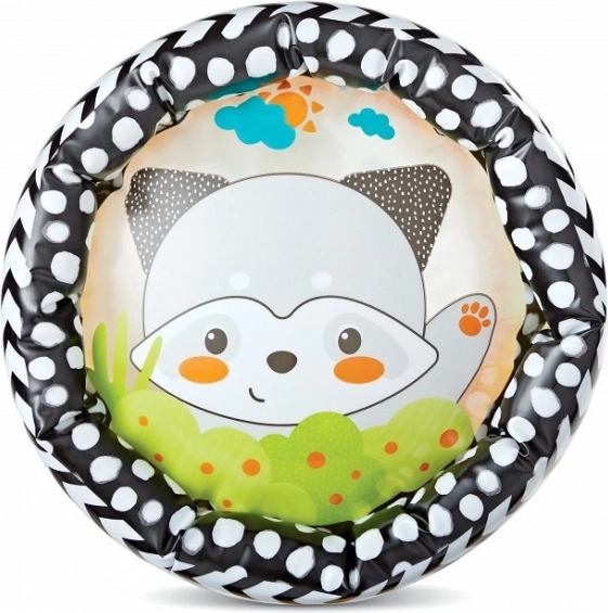 Nafukavajući valjak INFANTINO osmišljen je tako da prirodno potiče grubu motoriku, koordinaciju oko–ruka i prve pokušaje puzanja. Djecu će privući prozirni dizajn sa šarenim životinjicama, dok kuglice sa zvončićima skrivene unutra pri kotrljanju ugodno zveckaju i stimuliraju sluh i vid.