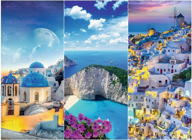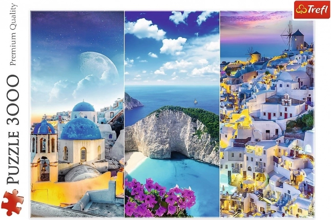 Trefl slagalica 3000 kom – Grčki praznici. Veliki format 116 × 85 cm, kalandrirani papir, ekološke boje i detaljan kolaž Santorinija i obale.