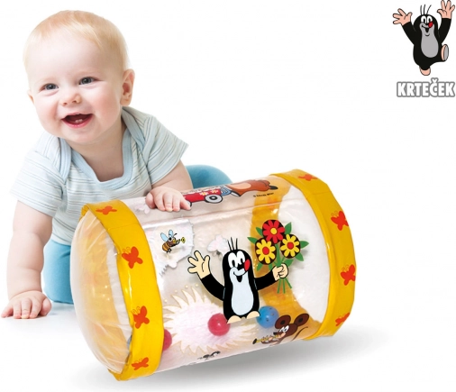 Zabavni nafukajući valjak s motivom omiljene Krtice donosi djeci od 6 mjeseci puno radosti i otkrivanja. Šarene slike i šarene zvončiće potiču maštu, razvijaju koncentraciju i motoričke vještine. Zahvaljujući obliku pruža potporu pri prvim pokušajima stajanja i potiče percepciju i prve riječi.
