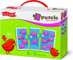 S puzzle trojkama dijelova, koje se sastoje od slika, djeca lako razumiju osnovne pojmove matematike u razigranom okruženju. Ovaj set je idealan za razvoj logičkog mišljenja i kognitivnih sposobnosti.