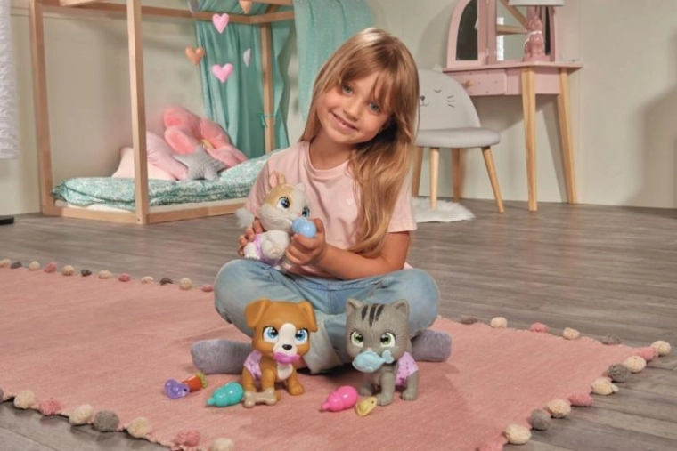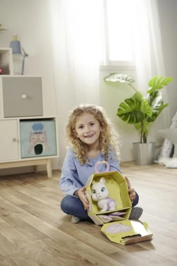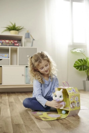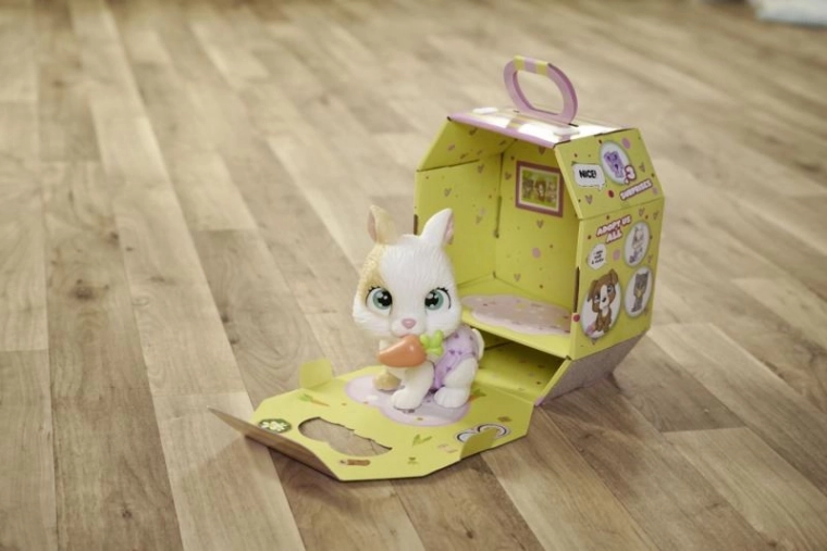 Zečića lako možete ponijeti kamo god krenete zahvaljujući kartonskom pakiranju s ručkom koje služi kao prijenosna kućica. Unutra vas čekaju i papirnate vrećice s iznenađenjem – tematski dodaci za još više scenarija igre. Magična šapica otkriva spol ljubimca i pomaže djeci stvoriti osobnu povezanost s njim.