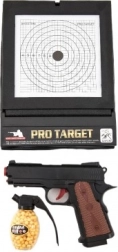 Atraktivno PRO-TARGET pakiranje prikazuje sadržaj na prvi pogled – pištolj, metu i mjesto za municiju, idealno kao poklon.