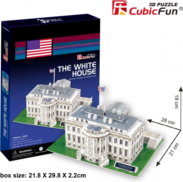 CUBICFUN 3D puzzle Bijela kuća sa 64 dijela. Bez ljepila, od čvrste pjene, težina 4/7. Sastavite ikoničnu građevinu za 150–180 min. Sjajna dekoracija i poklon.