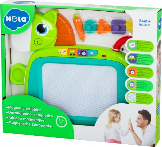 Magnetska ploča HOLA odličan je izbor za razvoj kreativnosti i fine motorike. Zahvaljujući četiri šarena područja nastaju crteži u bojama koje djecu zabavljaju. Jednim potezom klizača površinu obrišete i spremna je za nove ideje. Oblik konjića sa svjetlećom grivom i veselim zvukovima motivira djecu na igru.