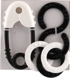 sadrži klasičnu sigurnosnu iglu i osmicu s prstenovima.