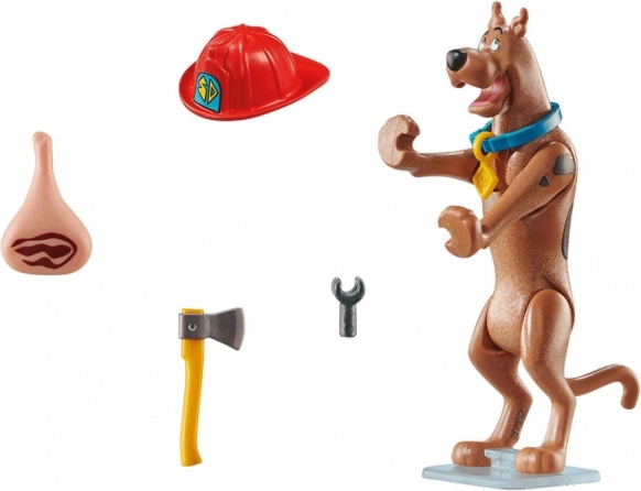 1× figurica Scooby, vatrogasna kaciga, sjekira, ključ, pileće zabatno meso, postolje