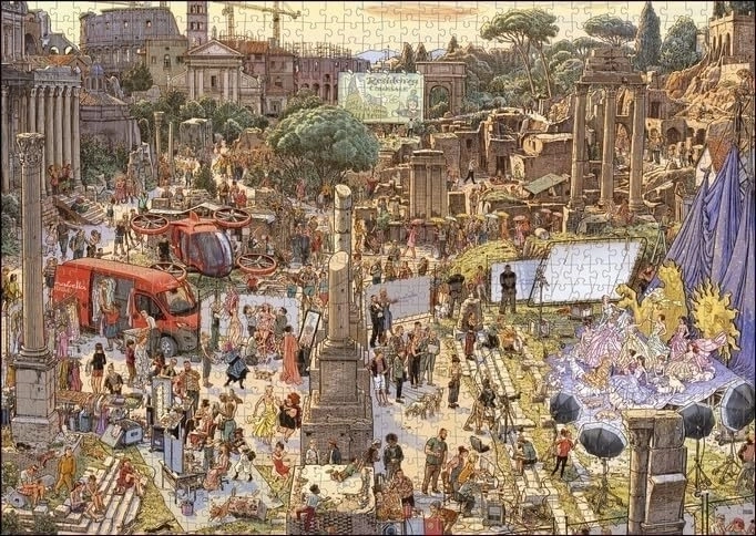 Puzzle s motivom snimanja modne revije na antičkom Forumu Romanumu u Rimu, koje su izradili talentirani njemački umjetnici Doro Göbel i Peter Knorr, idealan su izazov za svakog ljubitelja slaganja zahvaljujući svojih 2000 dijelova.
