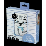 Senzorna knjiga GAGAGU Tigar osmišljena je za najmlađu djecu kako bi podržala njihovu prirodnu znatiželju. Obostrana izrada kombinira kontrastne ilustracije životinja s vezenim, na dodir različitim strukturama koje stimuliraju dodir i fokus.
