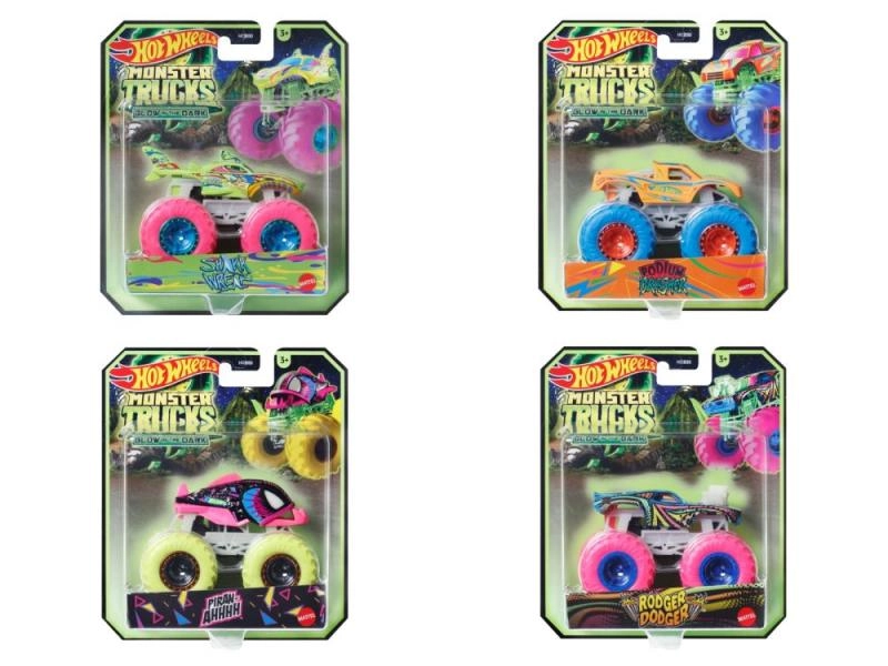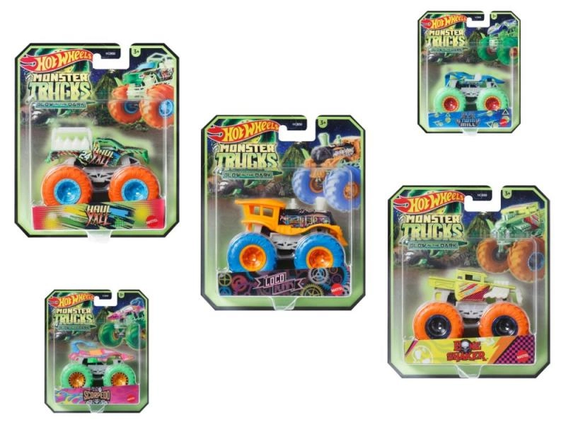 Akcija je još uzbudljivija kada se svjetla ugase i Hot Wheels® Monster Trucks koji svijetle u mraku zasjaje! Svako vozilo iz ove serije ima elemente koji svijetle u mraku i pokazuju što znači „brzina svjetlosti“! Gledaj kako se Monster Truckovi bore u tami! Mega veliki kotači i sjajni dizajni daju novu snagu beskrajnim sudarima i naletima. Upoznaj epski karakter svog vozila i uživaj u još boljoj zabavi. Pomoći će ti brojni detalji navedeni na pakiranju – kao što su ime, tip vozila, snaga, jedinstven način napada i motorizacija. Obožavatelji i kolekcionari monster truckova poželjet će ih sve! Odličan poklon za djecu od 3 do 8 godina. Svaki se prodaje zasebno prema trenutačnoj ponudi. Boje i izgled proizvoda mogu se razlikovati. Dimenzije pakiranja cca 14 x 21,5 x 6,5 cm. Dob 3+.