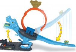 Ispalite auto iz policijske postaje, projurite kroz vertikalnu petlju i naciljajte zonu sudara ravno na T‑rexa. Kad padne, njegove se oči pretvaraju u simbol X – jasna pobjeda za male junake. Set donosi brzu akciju, kaskaderske trikove i napete scenarije iz grada Hot Wheels.