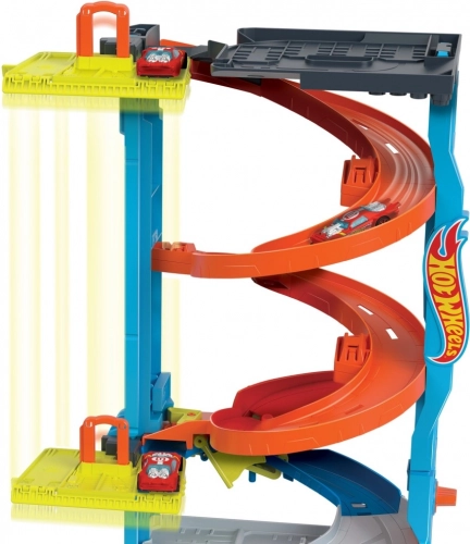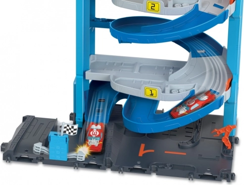 Pretvorite kućne utrke u adrenalinski show. Trkački toranj HOT WHEELS City se transformira 2 u 1 – iz visoke samostalne staze u dvostruki trkaći krug za dvoboje autića rame uz rame. Obostrano dizalo radi u oba režima i tijekom preobrazbe se automatski prilagođava. Tu je i startna kapija za fer zajednički start i dinamične spusteve pune zavoja.