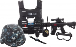 Kaciga, naočale, voki-toki, granat i sat stvaraju cjelovit policijski set. Zahvaljujući mrežastom pakiranju sve imate pregledno na jednom mjestu.