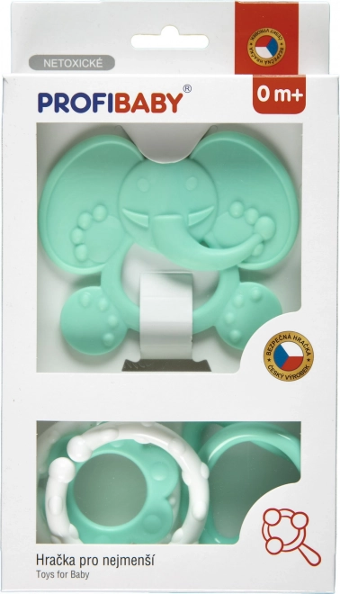 Ovaj set u pastelnim bojama osmišljen je kako bi bebama pružio sigurno olakšanje pri nicanju zubića te istodobno poticao razvoj osjetila. Lagani materijali i glatki oblici nježni su za usta i desni, lako se drže i podupiru razvoj fine motorike.