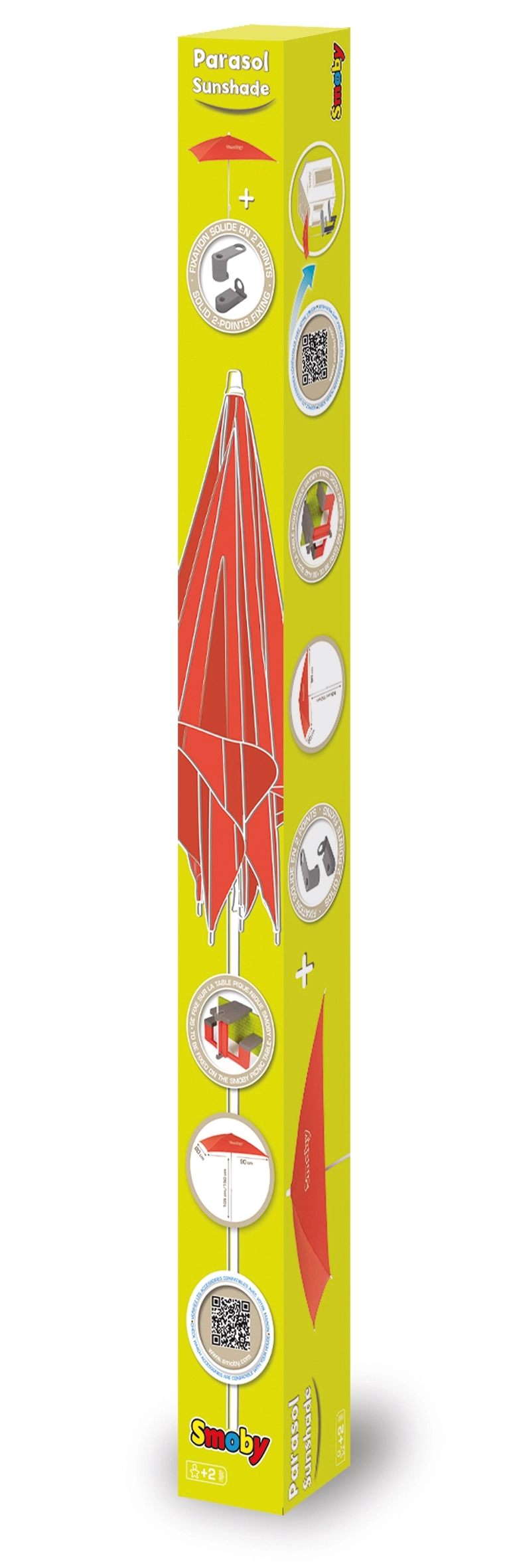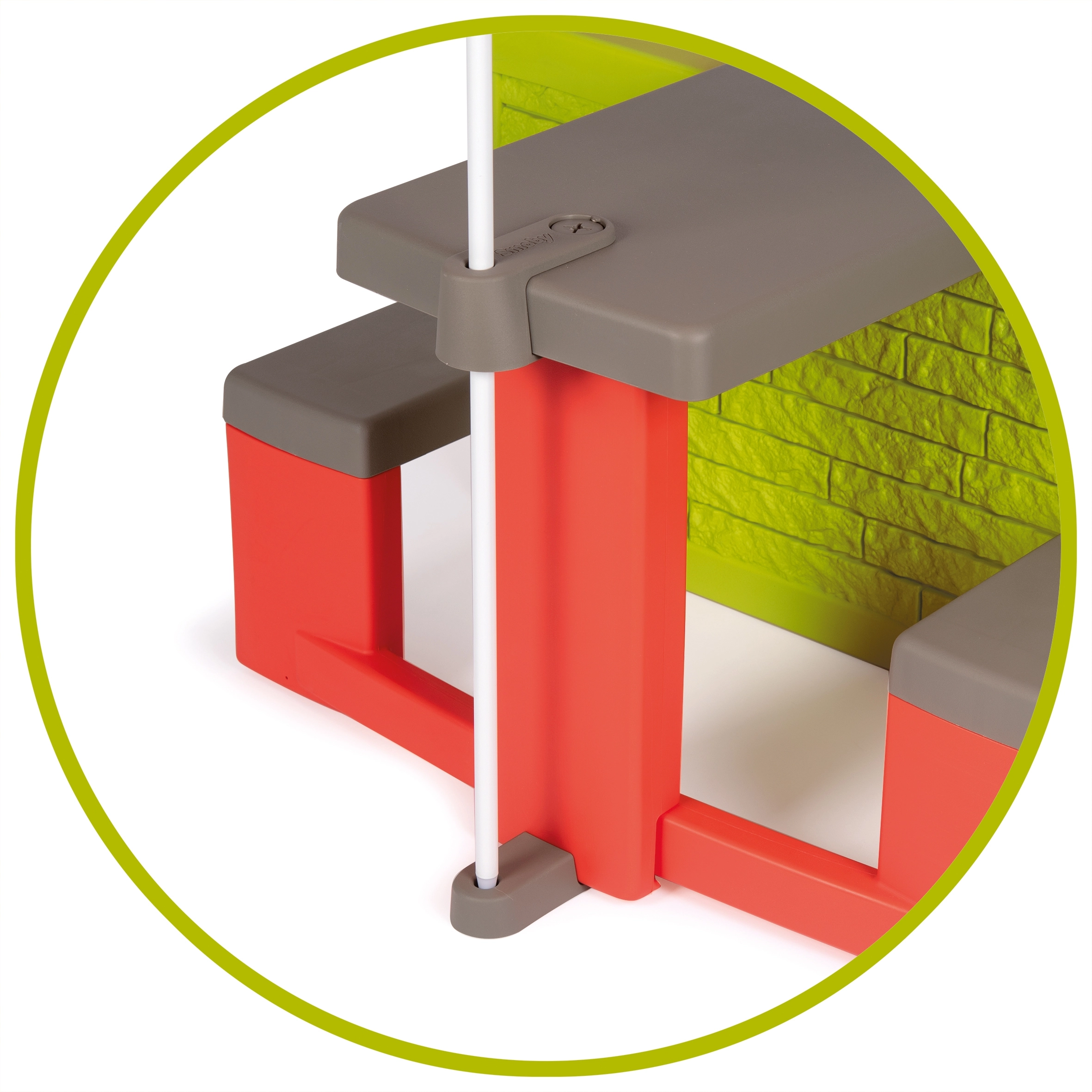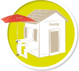 Suncobran za zaštitu od sunca i kiše, pričvršćen za vrtni stol SMOBY cottage.