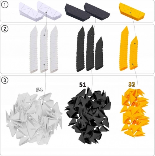 U pakiranju ćete pronaći 147 papirnatih elemenata i detaljne tiskane upute. Za vizualne tipove na raspolaganju je i video vodič koji vodi kroz cijeli proces slaganja. Set je odličan za kućno stvaranje, školske radionice i kao dar za male kreativce.