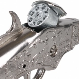 Otkrijte svijet Divljeg zapada s ovom kaubojskom puškom koja nudi autentičnost i sigurnu zabavu za djecu zahvaljujući svojoj metalnoj konstrukciji i kapacitetu 8 hitaca.