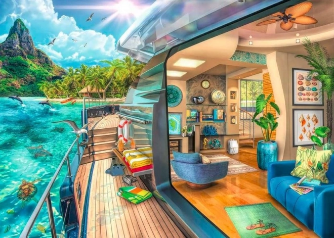 Otkrijte kvalitetne RAVENSBURGER puzzle s motivom tropske plovidbe. Zahvaljujući tehnologiji SoftClick i konceptu Perfect Age Fit uživat ćete u preciznom spajanju dijelova i udobnom slaganju. 1000 dijelova, prirodna lanena struktura za oštre motive i idealan izbor za ljubitelje puzzli od 14 godina.