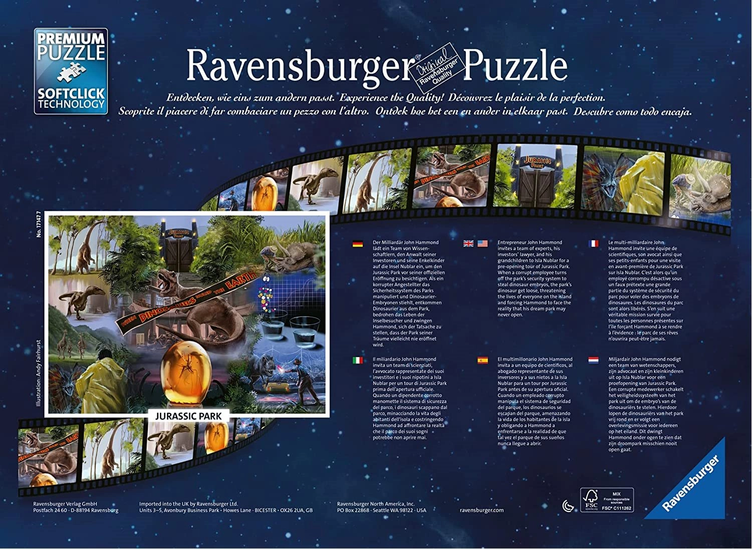 Serija slagalica od 1000 dijelova Ravensburger donosi jedinstvene i zanimljive uzorke za slaganje, u ovom slučaju slagalicu s motivom iz filma Jurski park.